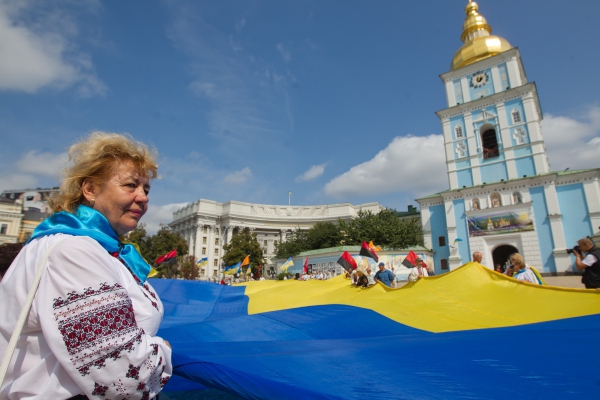 Украина 23 августа чтит свой национальный флаг. На Софийской площади в Киеве государственный флаг торжественно подняли в присутствии главных лиц страны.
