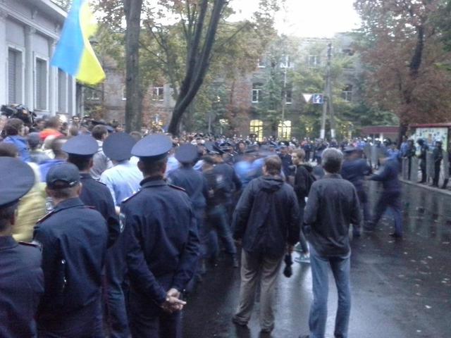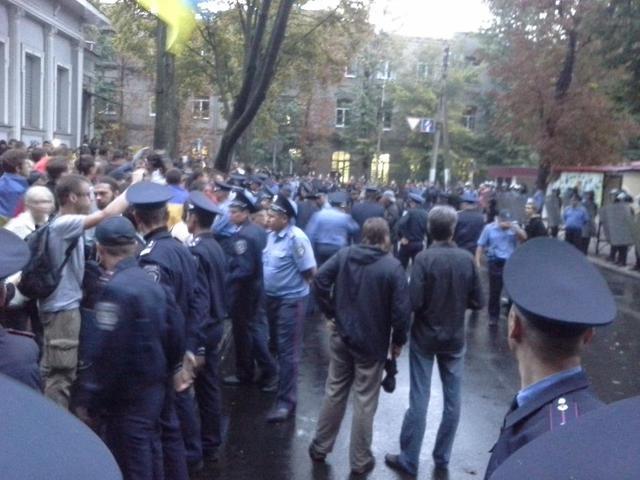 Здание консульства и проезжая часть улицы были оцеплены милицией, движение по Ольминского перекрыто.