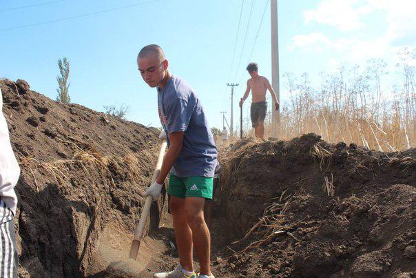 Как сообщает Цензор.Нет со ссылкой на ЛигаБизнесИнформ, один из местных жителей - отец 32 детей (29 приемных) Геннадий Мохненко - вместе с сыновьями помогает строить оборонительные сооружения.
