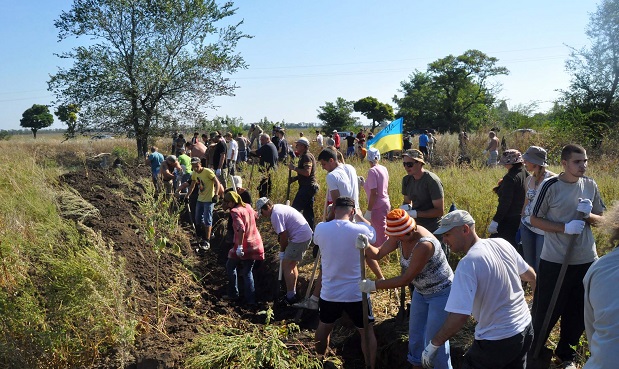 По данным пресс-секретаря председателя Запорожской областной госадминистрации Андрея Рыбальченко, активисты роют огромный окоп, который растянулся на несколько километров. Г-н Рыбальченко констатирует, что у местных жителей нет веры российским войскам и террористам, поэтому жители будут защищать свой город от вторжения.