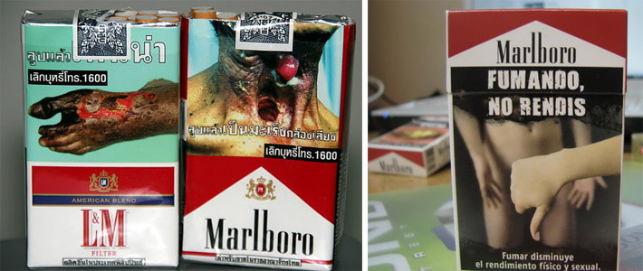 Как обойти социальную рекламу о вреде табака придумал бизнесмен из Австралии. Он разработал специальные наклейки, которыми можно заклеить рисунки на пачках сигарет.
