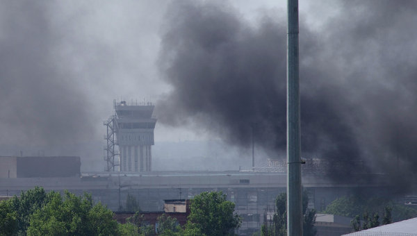 От попадания снаряда на территорию аэропорта загорелась вторая цистерна склада ГСМ возле старого терминала аэропорта, сообщают пользователи соцсетей.