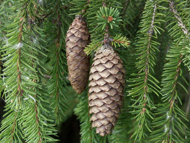 При простудных заболеваниях и насморке 4 ст. ложки перемолотых еловых шишек заливают одним стаканом кипятка и кипятят 30 минут. Остывшим отваром полощут горло 5-6 раз в день.