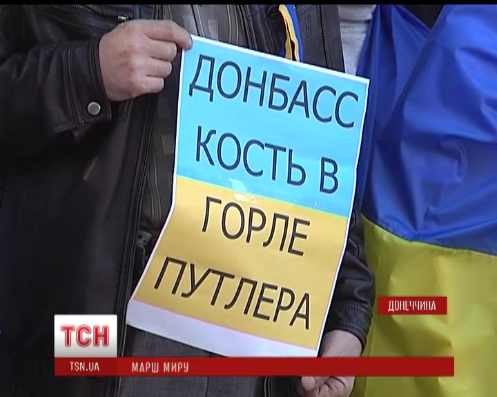 Людей собралось полторы сотни, однако для городка, который расположен всего в 30 км от зоны активных боевых действий - это немало, говорят организаторы. Местные жители хотели показать, что хотят жить в собственном государстве - Украине.
