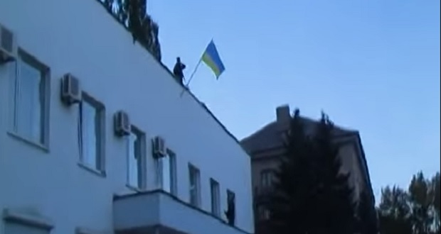 В Ждановке сорвали украинский флаг со здания исполкома (ВИДЕО)
