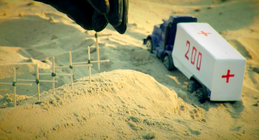 На видео сравнивают Путина с Гитлером, а в припеве к песне советуют российским военным "Ujoben sie, bitte" из Украины. А ранее в Сети запустили сайт, посвященный российскому "грузу 200". На видео есть немало фашистской хроники, а также пластиковых солдатиков, которыми играют в войну.
