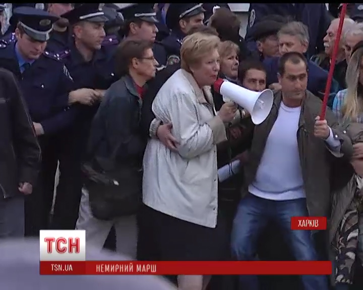 Полторы сотни агрессивных людей преимущественно пожилого возраста все же пытались ее провести. Двадцатерых самых активных, в том числе и главу харьковских коммунистов Аллу Александровскую, милиция задержала.