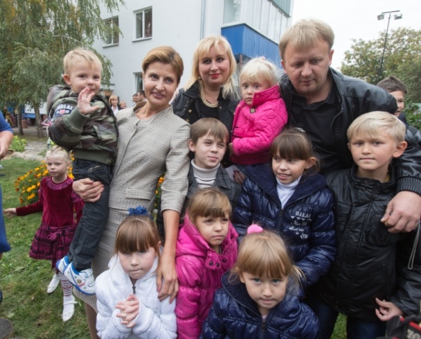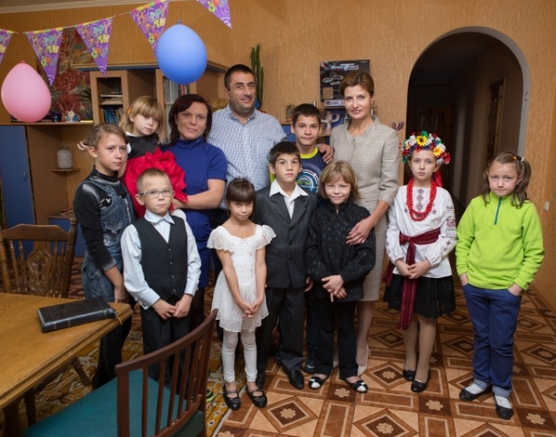 Также супруга президента посетила центр семейного воспитания "Моя семья" в котором проживает семья Исаевых из города Мариуполь Донецкой области. Это - уникальная семья, в которой воспитываются 2 своих и 7 приемных детей, большинство из которых являются ВИЧ-положительными.