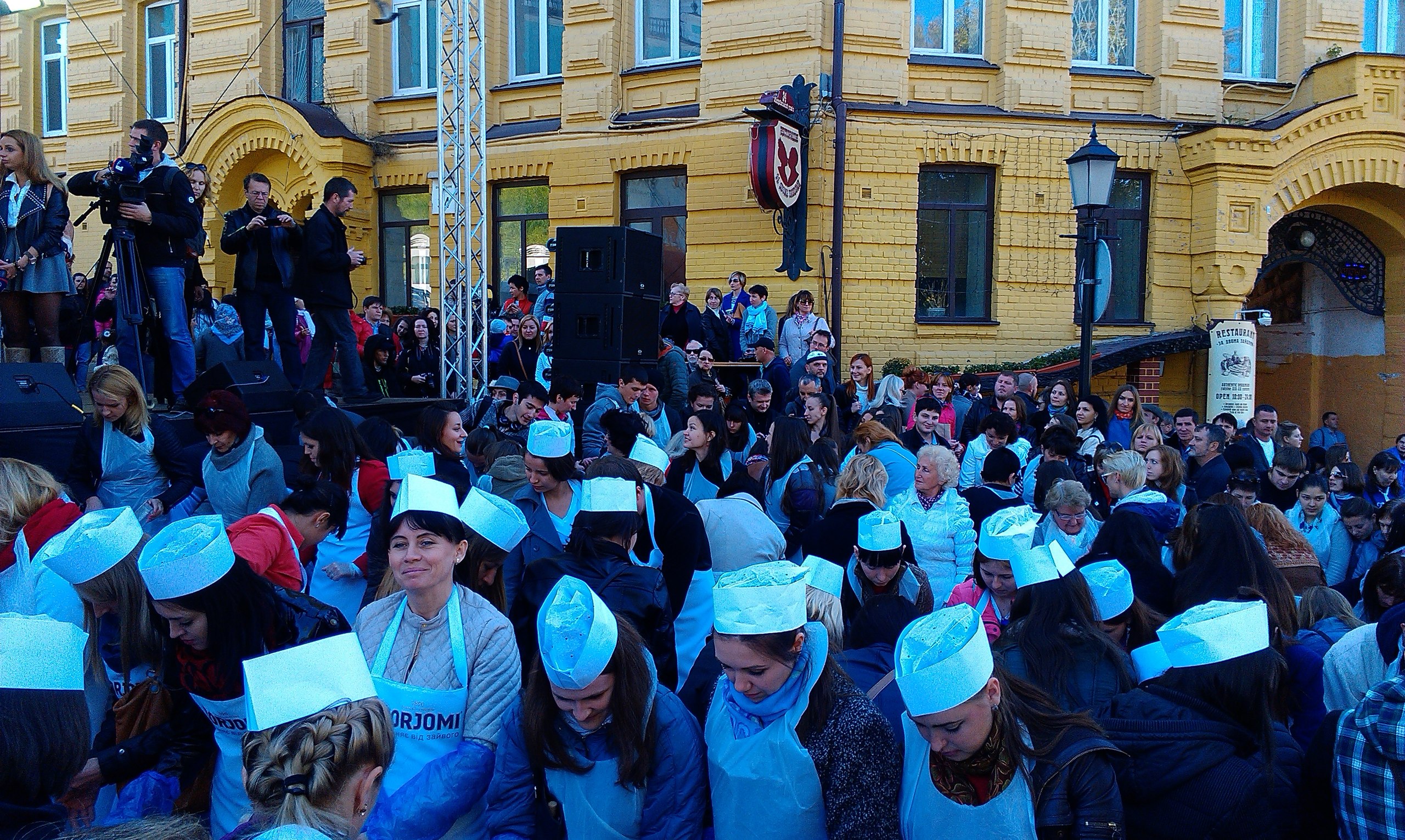 Огромному количеству желающих были розданы перчатки, фартуки, чепчики, так что каждый мог почувствовать себя настоящим поваром.