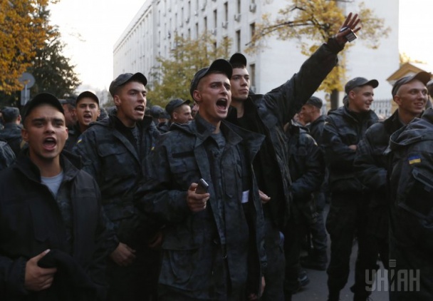 Срочники Нацгвардии взбунтовались и пешей колонной пришли под администрацию Президента, требуя демобилизации.