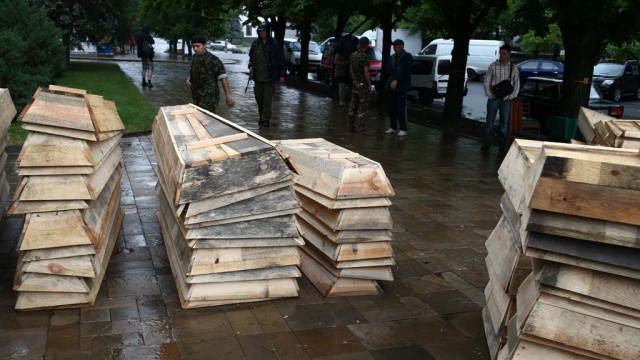 Тела держали в гробах из сбитых досок под открытым небом около месяца. Все это время боевики "ЛНР" отказывались отдавать погибших.