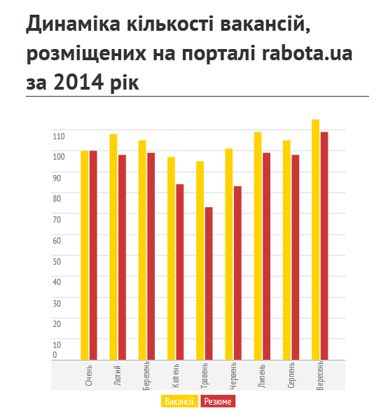 Согласно исследования аналитиков карьерного портала rabota.ua, рынок труда в сентябре демонстрирует уверенную позитивную динамику относительно летних месяцев. Динамика прироста вакансий выше, чем прироста резюме.