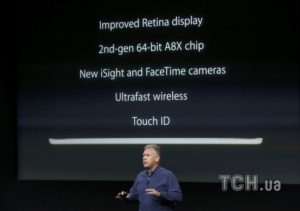 У новыго планшета более мощный 64-битный процессор A8X и сопроцессор M8.