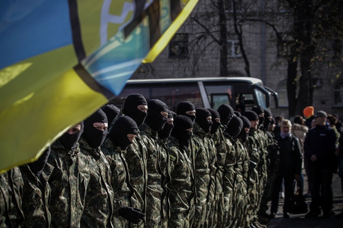 В Киеве бойцов батальона "Азов" провели в зону АТО