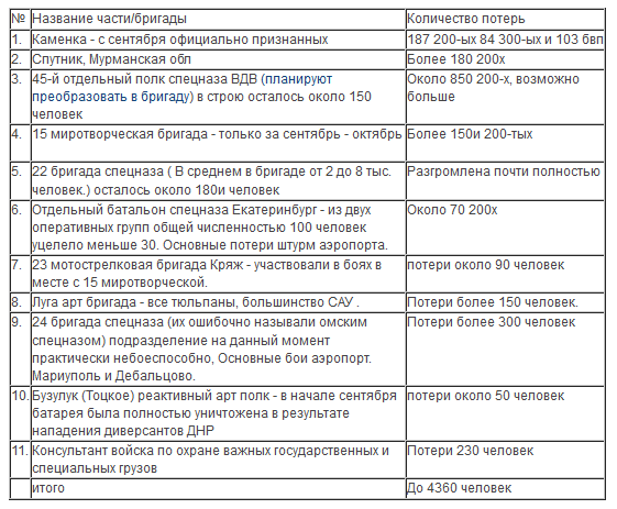 Российская правозащитница и основатель интернет-проекта "Груз 200 из Украины в Россию" Елена Васильева обнародовала сводную таблицу потерь российской армии в Украине.