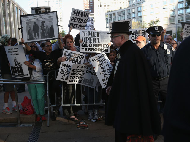 В Нью-Йорке у здания Метрополитен-оперы прошла акция протеста против постановки оперы "Смерть Клингхоффера", сообщает The New York Times.