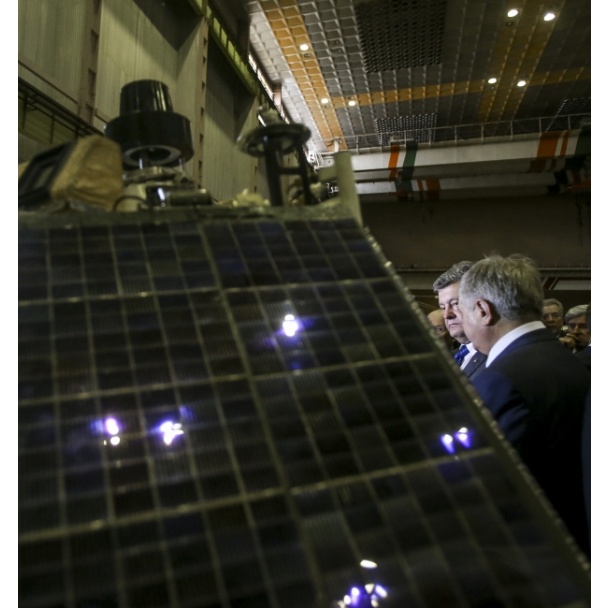 "Мы сейчас попали в непростую ситуацию. Наши космические изделия делались вместе с РФ. Сейчас все поставки были прекращены, и в этих тяжелых условиях руководство предприятия, руководство КБ "Южное", трудовой коллектив нашли возможности и готовы предложить услуги всему миру", - сказал президент. По словам Петра Порошенко, сейчас предприятие имеет совместные проекты с Бразилией, наработки из США, перспективным является направление сотрудничества с Турцией.