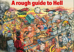 На обложке нового выпуска журнала будет размещена карикатура, на который изображены обитатели царства Сатаны. В огненную реку художник поместил многих известных мировых политиков. Среди них оказался и Владимир Путин. Рядом с ним можно увидеть Махмуда Ахмадинеджада, Башара Асада, недавно убитого Муаммара Каддафи и главу КНДР Ким Чен Ына.