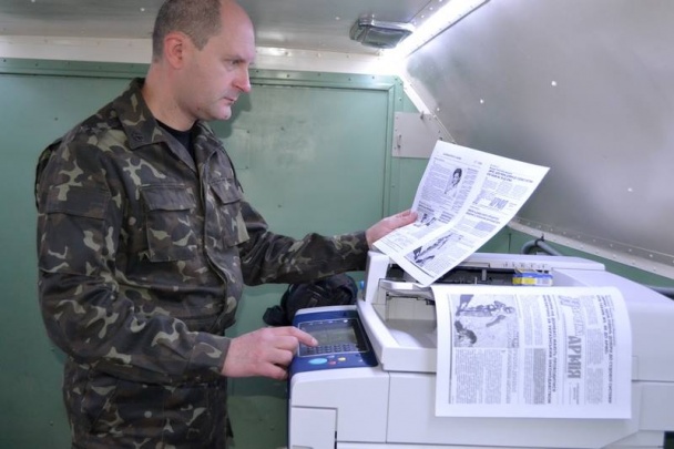 В зоне АТО напечатали первый номер спецвыпуска газеты центрального печатного органа Министерства обороны Украины "Народная армия".