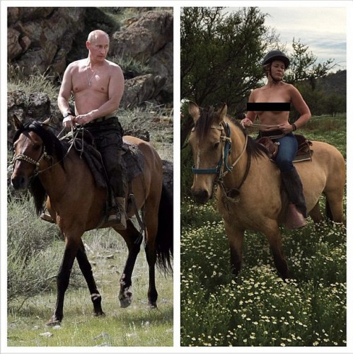 Челси Хэндлер решила скопировать известную фотографию Владимира Путина на коне. Фотографию топлес она разместила в своей социальной сети. "Все, что может сделать мужчина, женщина имеет право сделать лучше #Кремль", – подписала снимок Челси.