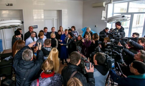 Ей провели экскурсию по зданию, где вскоре должны лечить военных. Сейчас здесь продолжается ремонт. Кроме этого, Марина Порошенко и поехала в Куйбышевский госпиталь, где выхаживают раненых с передовой. Ранее медики вынуждены были оказывать помощь фактически под открытым небом - госпиталь работал в полевых условиях. Сейчас военным врачам отдали часть помещения местной районной больницы. Сейчас лечение здесь проходит около 30-ти бойцов.