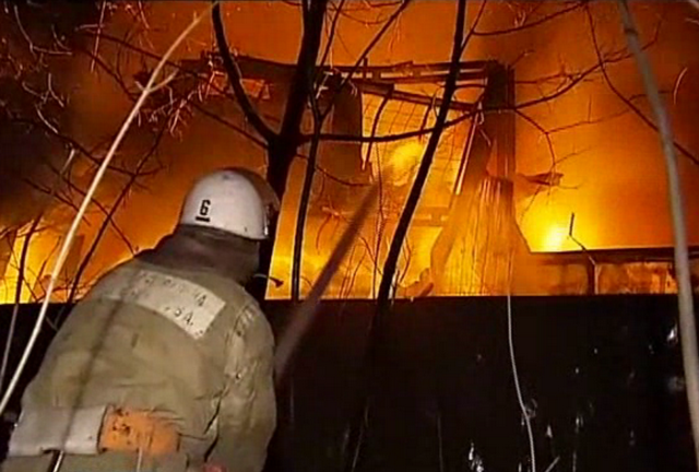Сейчас речь идет о том, что возле парка Пушкина над ангаром стоит огненная стена около 50 метров. Приехало очень много пожарных и скорая помощь. Слышать звук небольших взрывы, полыхает огонь. Сгорело несколько деревьев. Пожарные тушат пламя со стороны парка, чтобы огонь не перекинулся на деревья, - пишет Сегодня.