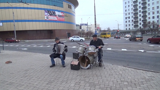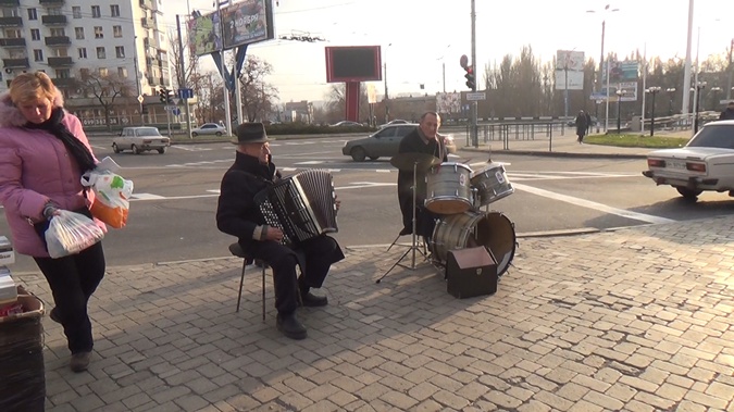 Несмотря на контузию, донецкие деды-рокеры играют на улицах воюющего города (ВИДЕО)