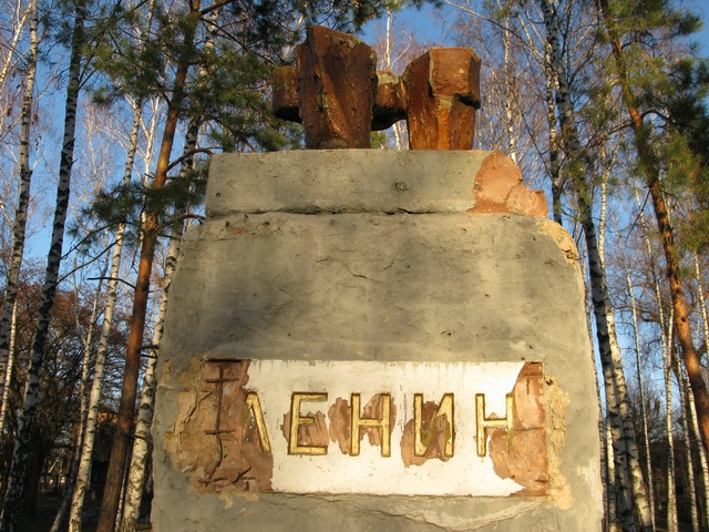 На постаменте остались только ноги. Остальные части памятника находится возле него. Только куда-то делась голова.