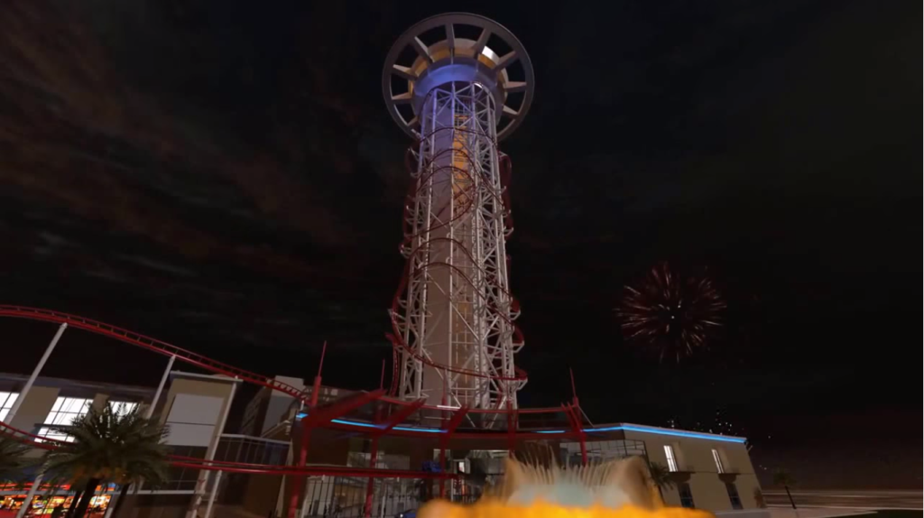 «Американские горки» невероятной высоты будут возведены в рамках строительства развлекательного комплекса Skyplex. В течение трехминутного заезда желающие поднимутся на самый верх 163-метровой башни, а затем спустятся вниз на скорости 105 км/ч.