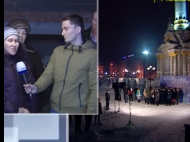 Прямой эфир телеканал Интер провел в годовщину Майдана в режиме телемоста между жителями Дебальцево и людьми, собравшимися на Майдане Незалежности.