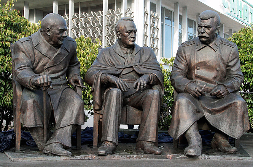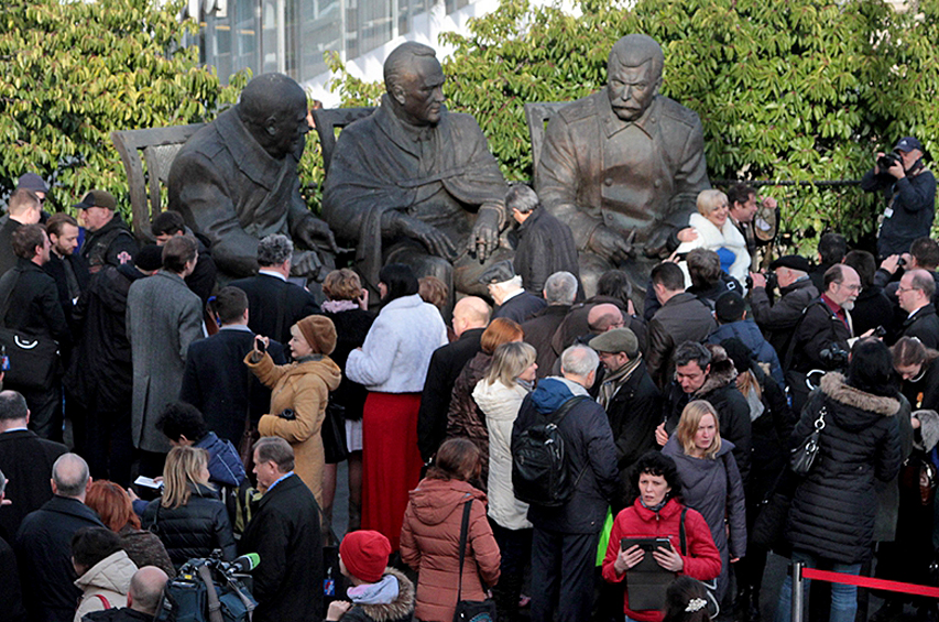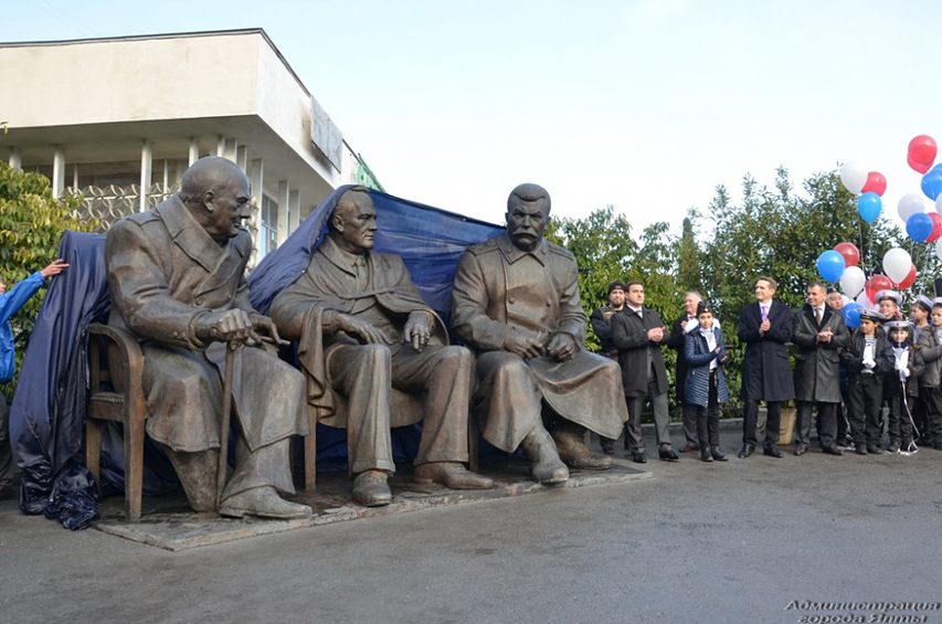 В Ялте 5 февраля в рамках международной научной конференции, посвященной 70-летию Ялтинской конференции февраля 1945 года открыли совместный памятник Иосифу Сталину, Уинстону Черчиллю и Франклину Рузвельту.