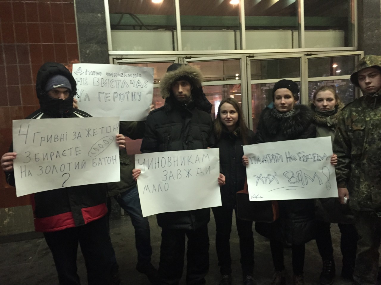 Такими действиями активисты пытаются донести до местных властей, что киевская власть должна служить киевлянам, а не заниматься вымогательством. Протестующие готовы предоставить общественности достоверную информацию о настоящей цели киевской власти повысить тарифы на проезд в метро.