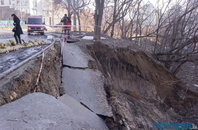 Могут пострадать два магистральных трубопровода, которые подают теплоноситель на почти половину столичных домов. Кроме того, сползает земля и на элитной Воздвиженке, возле замка Ричарда и на Парковой дороге.