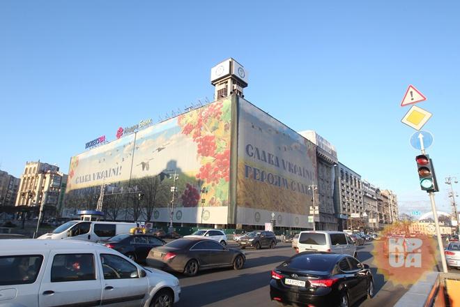 За строительным забором фасад здания сохранил свой вид со времен Евромайдана. На стенах остались старые плакаты, объявления активистов. Вот-вот, кажется, из холла на улицу выбегут митингующие. Но вместо них к нам выходят строители.