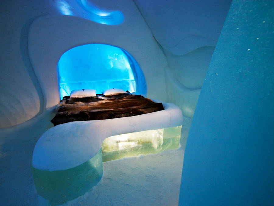 Внутри ледяной гостиницы вы найдете ледяной бар, церковь изо льда, а также ледяные эксклюзивные апартаменты, интерьер которых разрабатывают дизайнеры со всего мира.