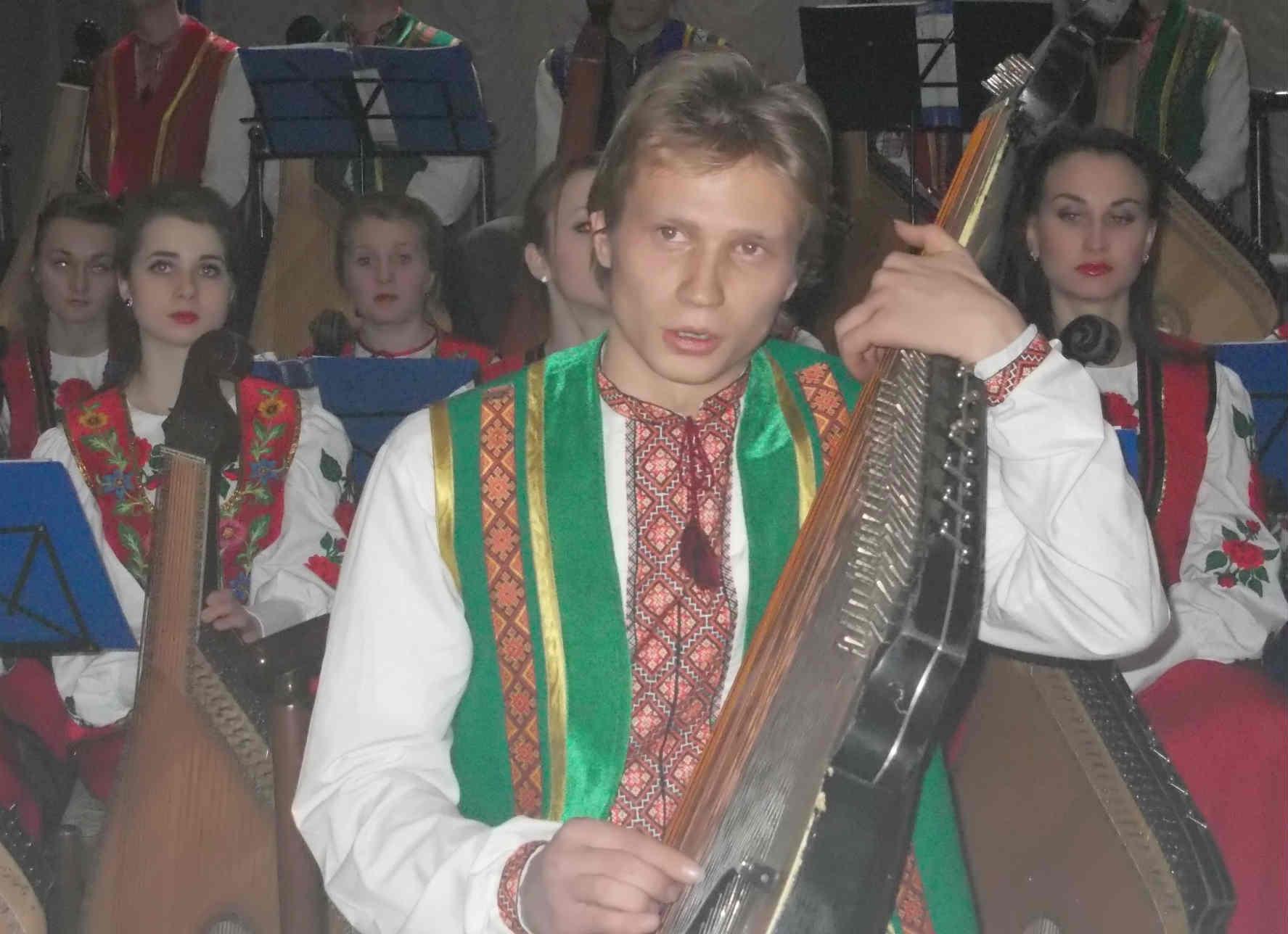 Студент второго курса факультета музыкального искусства (кафедра бандуры) вдохновенно исполнял украинскую народную песню «Добрий вечір тобі, зелена діброво». Он не только мастерски аккомпанировал себе на бандуре, но будто проживал героическую эпоху, всем сердцем проникался судьбой казачества.