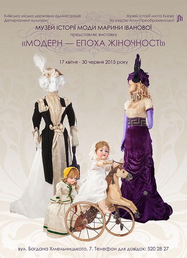 Проект реализован благодаря сотрудничеству с Музеем истории моды Марины Ивановой и киевской художницей Аллой Преображенской.В выставке «Модерн - эпоха женственности» акцент сделан именно на собрании из Музея истории моды Марины Ивановой, которое формировалось на протяжении 30 лет.