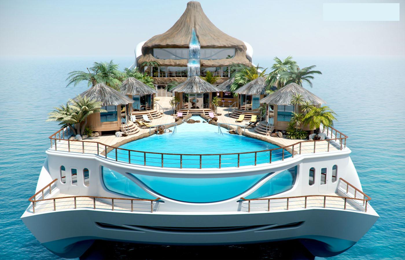 К выдающимся также относится Остров-Яхта. У этого плавучего городка, или всё же судна, будут и бары-рестораны, с прекрасным видом из окон, и катера, и даже целые посадочные площади для вертолётов. Но самая удивительная его особенность – это вулкан. Конечно, не будет он извергаться, тем самым, заставляя жителей пугаться и паниковать. Вулкан создан как декорация, чтобы «радовать глаз» и удивлять собственной необычностью.