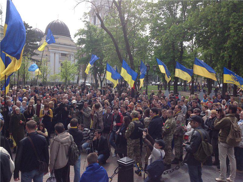 В приморском городе проходят сразу две акции - на Куликовом поле сейчас собрались около тысячи пророссийски настроенных одесситов, зв тоже время, на Соборной площади находятся около 300 сторонников единой Украины.