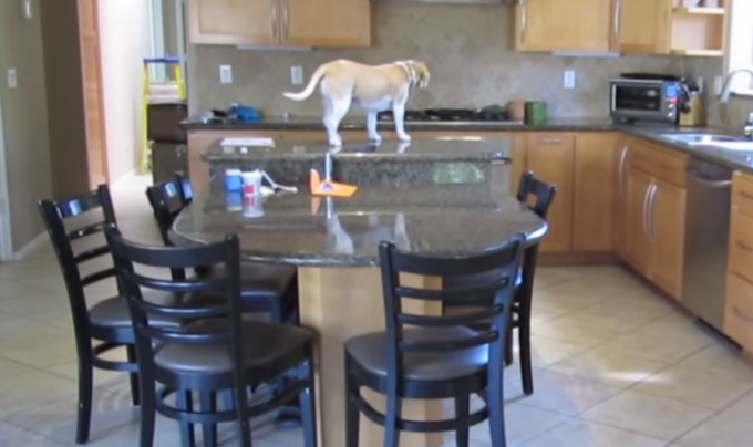 Когда они обнаружили многочисленные отпечатки лап Люси на кухонном столе, то им стало любопытно, как их собака сумела подняться наверх. Поэтому они поставили видеокамеру и выяснили это. Посмотрите на Люси в действии, это просто невероятно!То, до чего додумался этот пёс, просто удивительно! Обычно животным не свойственно использовать предметы для достижения своих целей, но Люси научилась делать это.