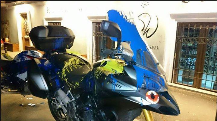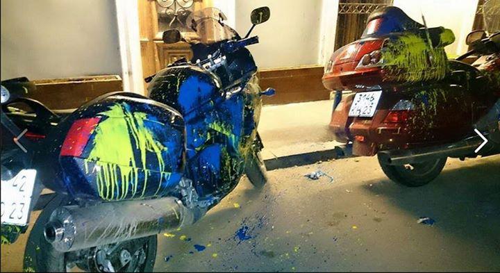 Фото облитых краской мотоциклов размещают пользователи социальных сетей. На прошлой неделе активисты организации «Свободная зона» в Тбилиси заставили двух россиян собственноручно срезать с мотоциклов георгиевские ленты. Позже правоохранительные органы Грузии задержали двух активистов организации.