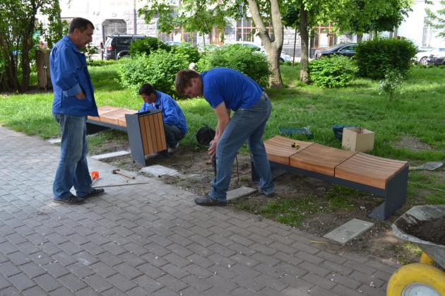 Планируется установить 21 скамью и 13 урн. Изюминкой являются написанные прямо на скамейках известные высказывания Григория Сковороды.