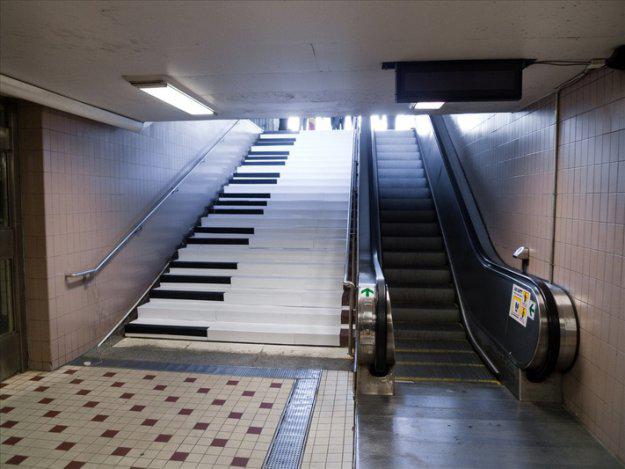 В Стокгольмской подземке появилась необычная музыкальная лестница, ступеньки которой стилизованы под клавиши пианино, причем при «нажатии» на них, они издают музыкальные звуки.