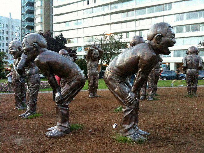 Это движение началось в Китае еще в 90-х годах прошлого столетия. А на весь мир распространилось не так давно. Согласно контракту, скульптуры должны были убрать в конце 2011 года.Читайте также: В Лондоне прошел фестиваль «Пушкин в Британии»Но проект настолько сроднился с городом, что в итоге, композиция была выкуплена за $1,5 миллиона. Это одно из любимых мест жителей Ванкувера и гостей города для фотографирования.