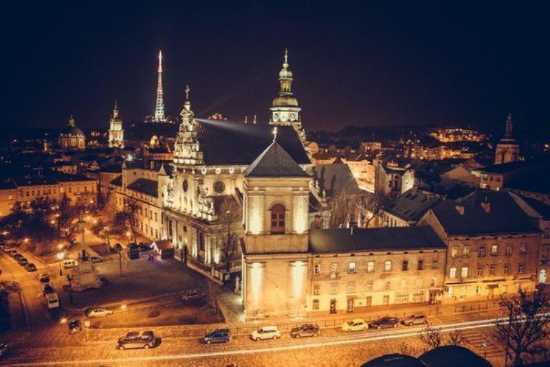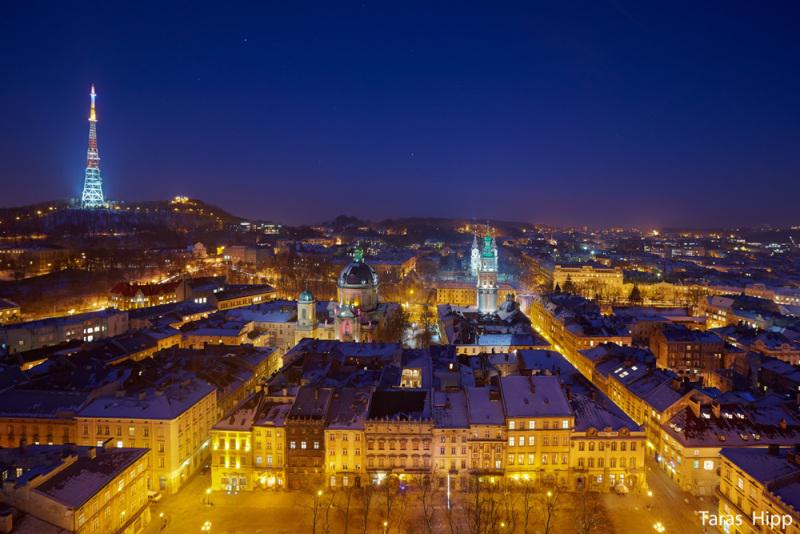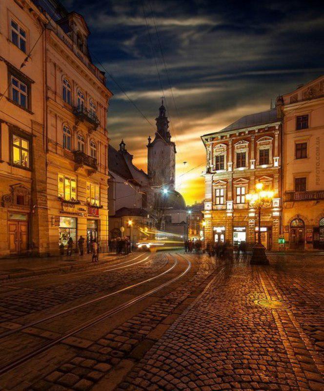 Атмосфера вечернего Львова, с запахами кофе и шоколада, мелодиями скрипки и песнями уличных музыкантов, есть действительно незабываемым. При свете вечерних фонарей улочки со старой архитектурой приобретают какой-то особый шарм таинственности. Сверкая огоньками на мокрой от дождя мостовой, свет окон и витрин рисует на ней разноцветную картину. Под вечер оживает центральная площадь Рынок, с которой видна красивая башня Замковой горы.