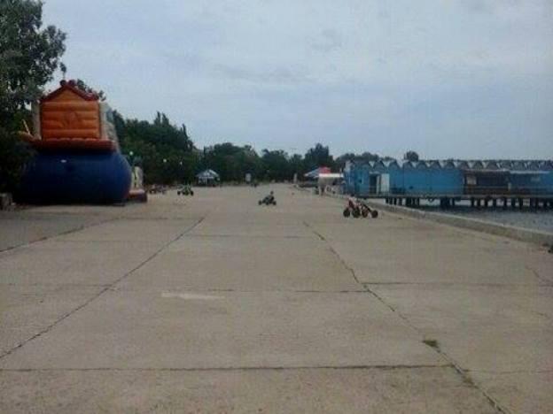 «Керчь. 24.06.2015. Набережная. Толпы невидимых туристов. Киоски с сувенирами и футболками с изображением этого, как его?.. даже слова определенного подобрать не могу. Общее впечатление от прогулки - город похож на квартиру, которую хозяева закрыли и уехали. Пыль, серость, неуютно», - пишет она.