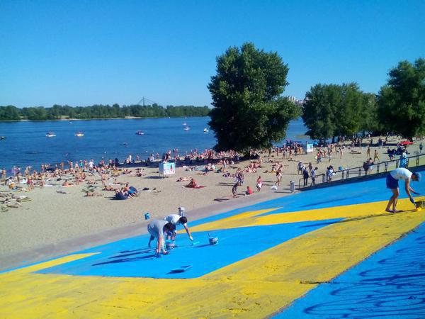 В Киеве рисуют огромный флаг крымских татар (ВИДЕО)