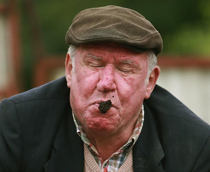 Участники плевались свежим навозом, собранным перед соревнованиями. Одному из претендентов на титул лучшего плевальщика навозом овца даже испражнилась прямо в рот. Выиграл тот, кто плюнул дальше.