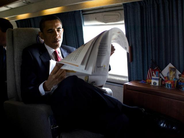 Президент Барак Обама читает национальные газеты, блоги и разные журналы