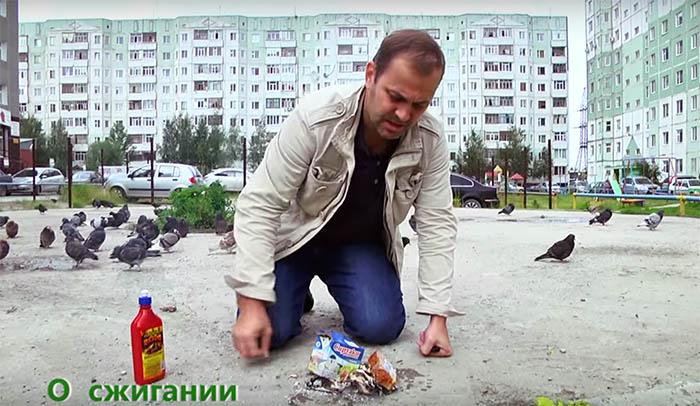 Автор ролика посетовал, что в городе нет передвижных крематориев и приходится все делать кустарным методом. "А был бы такой сжигатель продуктов, как было бы здорово", – отметил он.
